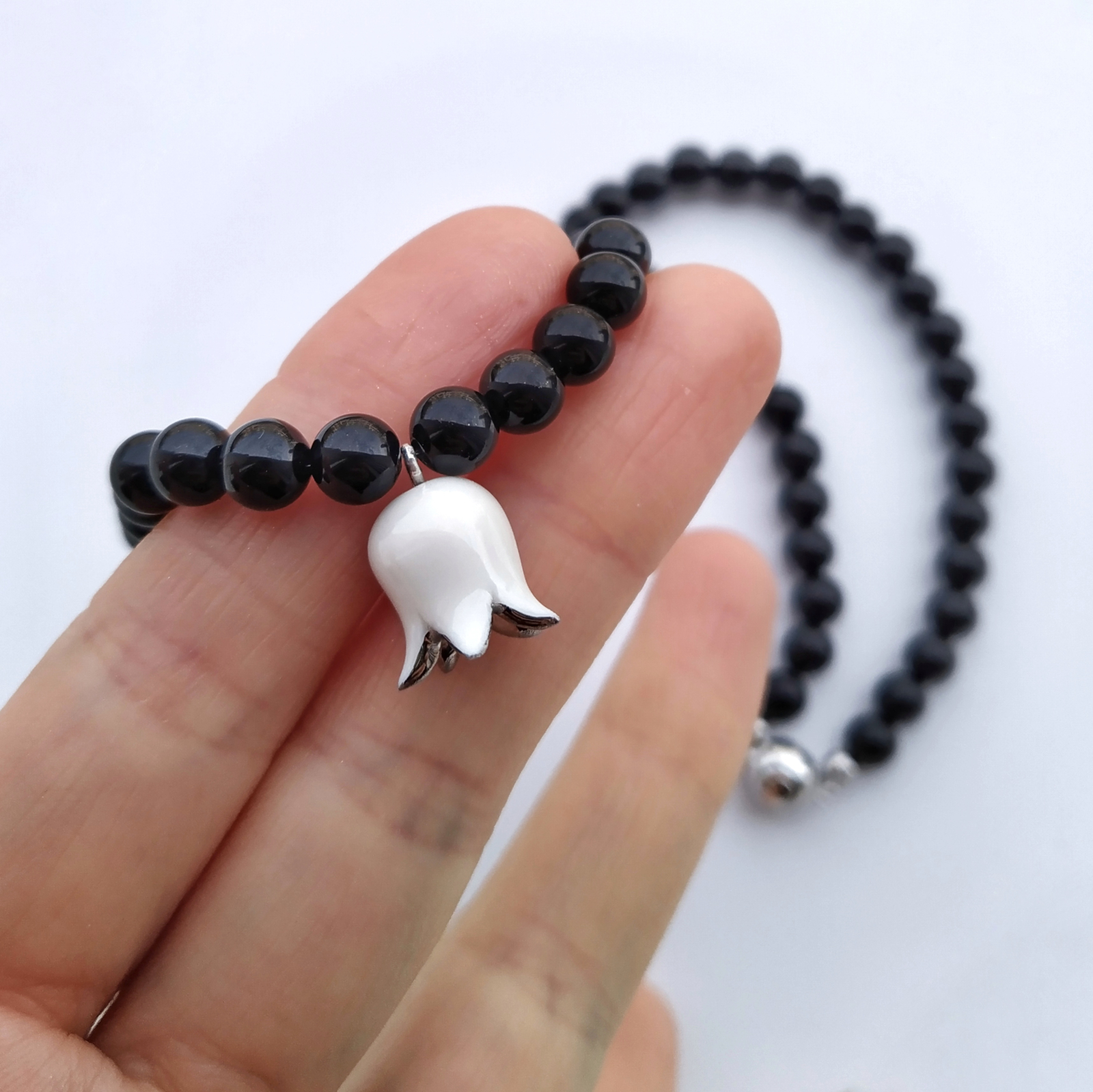 Each jewelry piece is unique and carefully hand carved from porcelain by Daniela Catoi. The product is three-times fired at high temperatures and, depending on the model, is decorated with pigment, luster, gold or platinum.